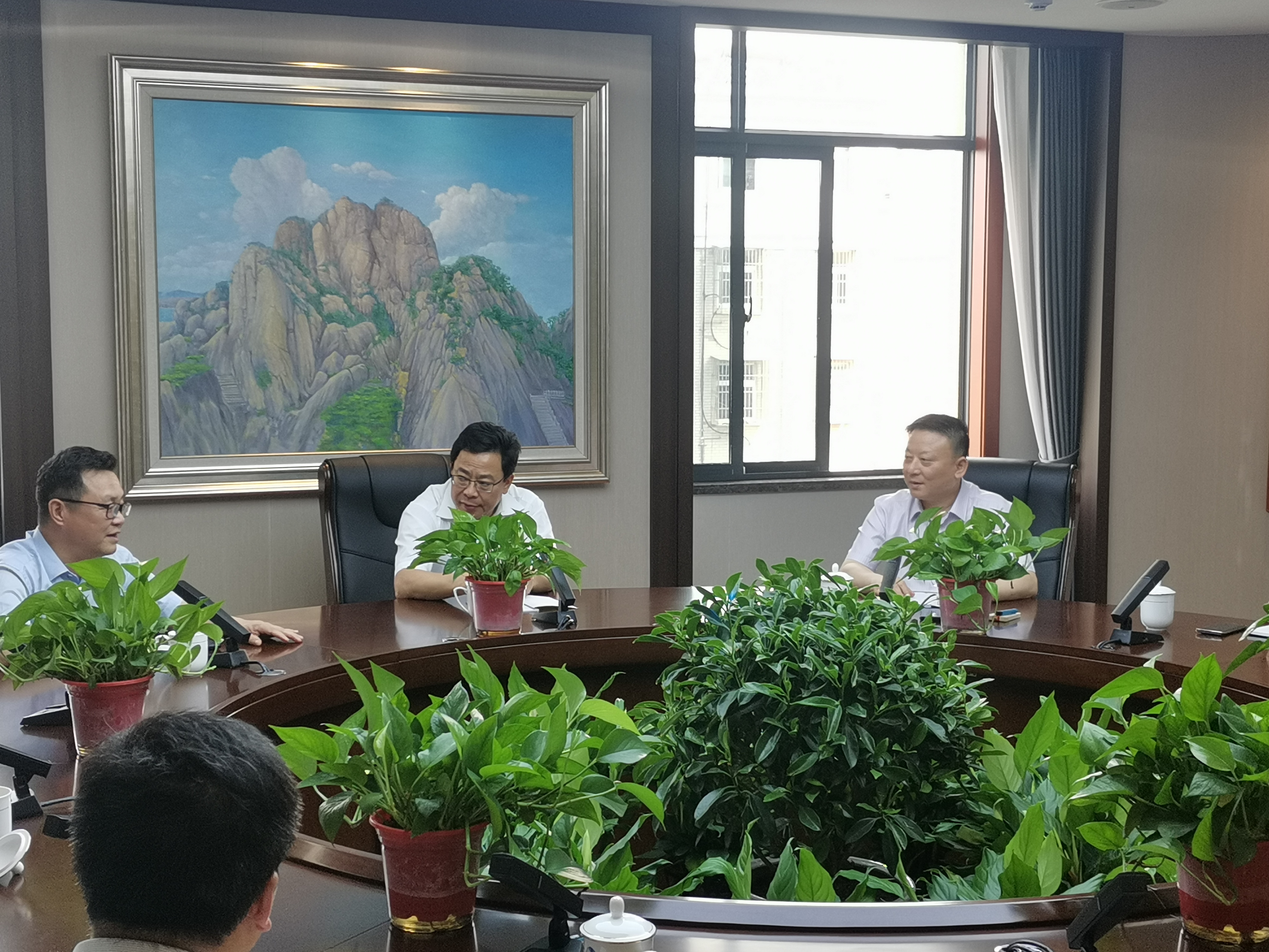在圓桌會議室,朱總與徐主席一行進行了親切會談。徐主席希望天墅集團緊跟市場形勢,做大做強,為安慶市經濟發展貢獻力量。