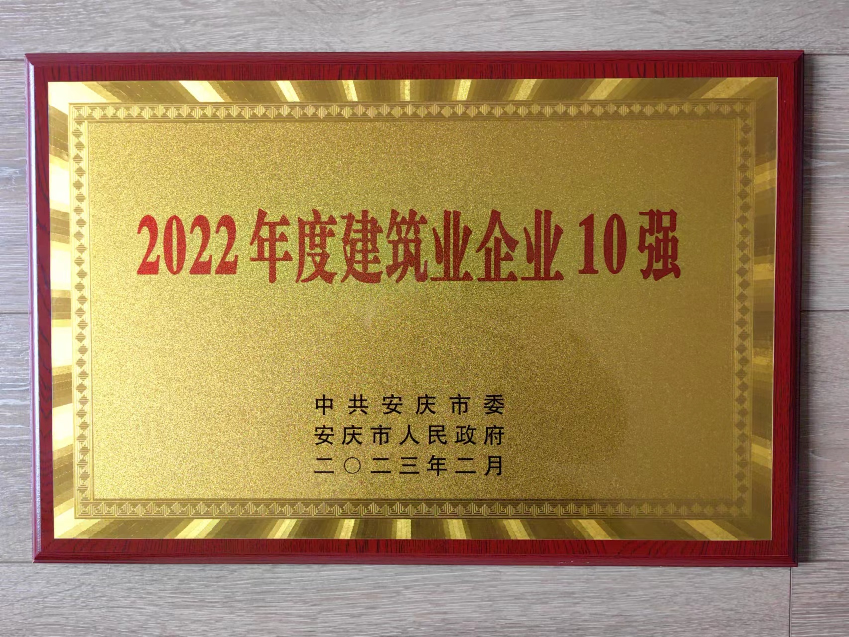 我公司榮獲安慶市“2022年度建筑業企業10強”榮譽稱號