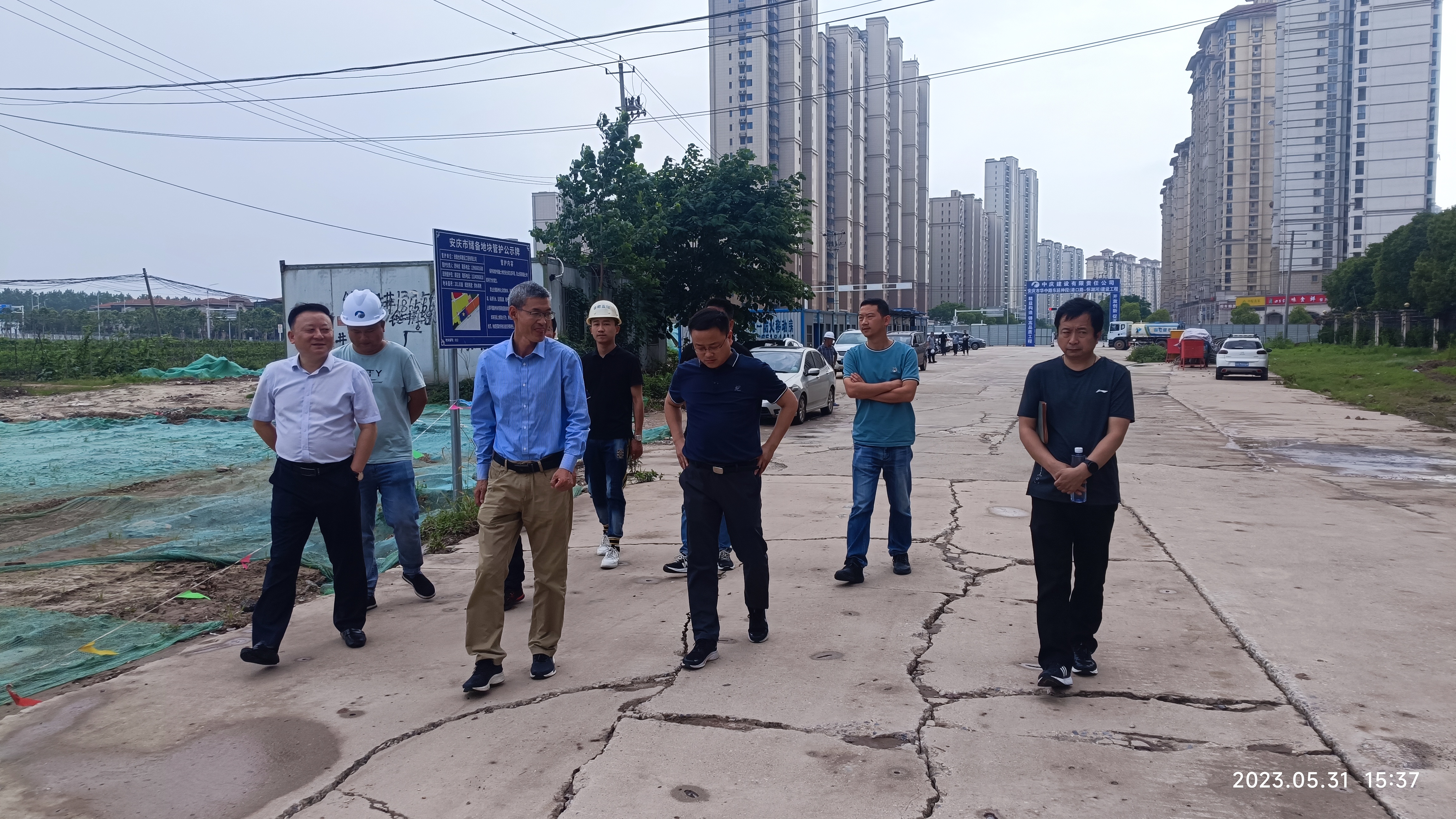 2023年5月31日下午,在安慶市重點工程建設處黨組書記、主任程啟令的帶領下,市重點處領導一行來到我公司承建的華中路項目現場進行實地調研,集團公司董事長和項目經理汪齊生負責陪同和介紹。