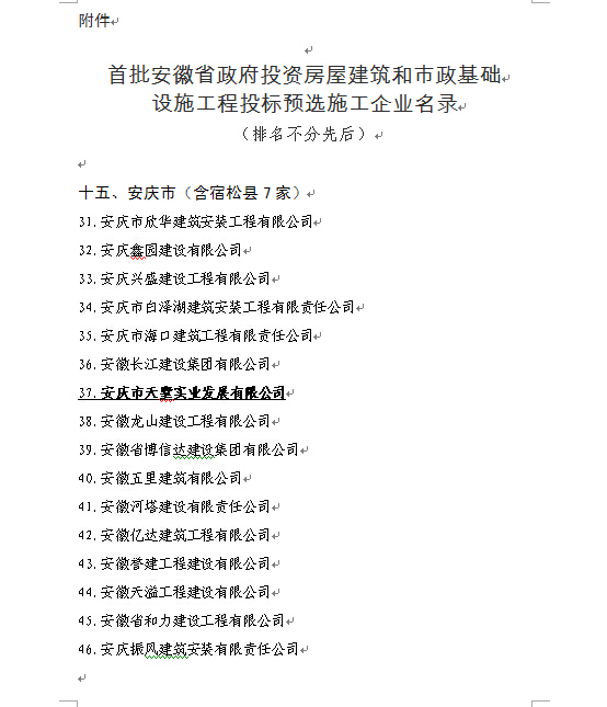 我公司入選首批安徽省政府投資房屋建筑和市政基礎設施工程投標預選施工企業名錄