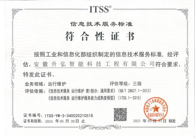 日前,升弘公司順利通過工信部中國電子工業(yè)標(biāo)準(zhǔn)化技術(shù)協(xié)會(huì)信息技術(shù)服務(wù)分會(huì)(簡(jiǎn)稱ITSS分會(huì))審核,獲發(fā)ITSS信息技術(shù)服務(wù)運(yùn)行維護(hù)三級(jí)資質(zhì)證書。