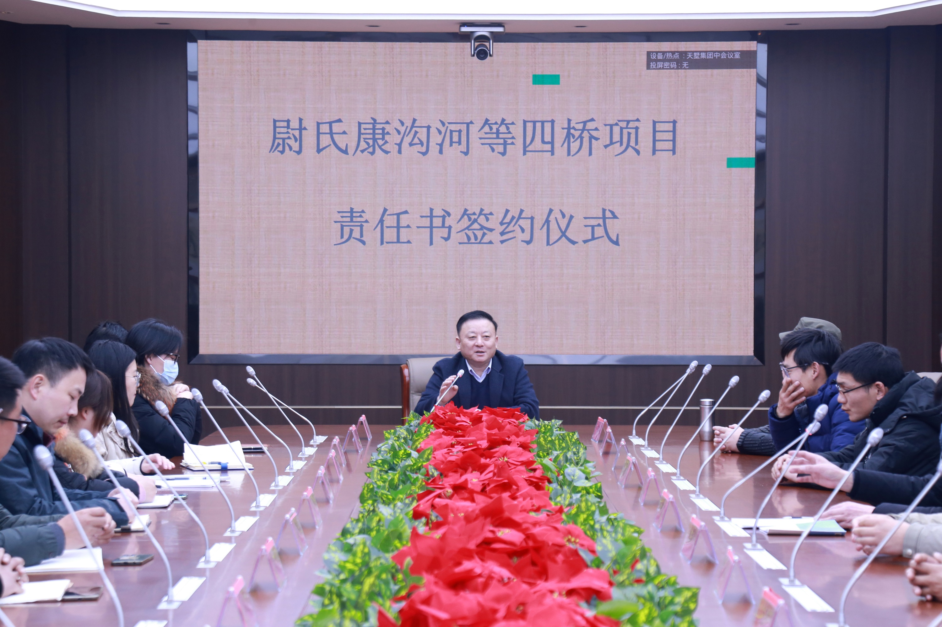2023年1月30日上午,集團公司在7樓中會議室舉行尉氏康溝橋等四橋項目目標責任書簽約儀式,本次簽約儀式由集團公司副總張勤飛主持,康溝橋項目部管理人員及公司中高級管理人員參會,集團公司董事長出席儀式并致辭。